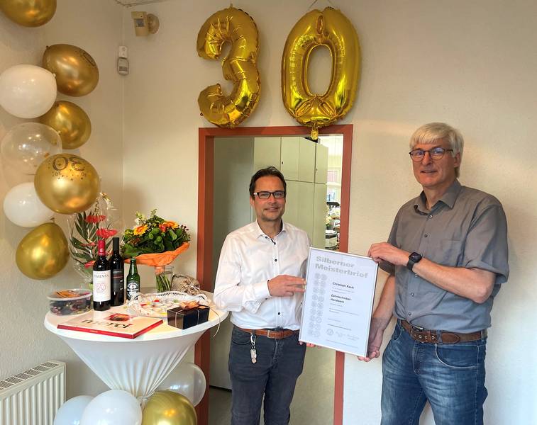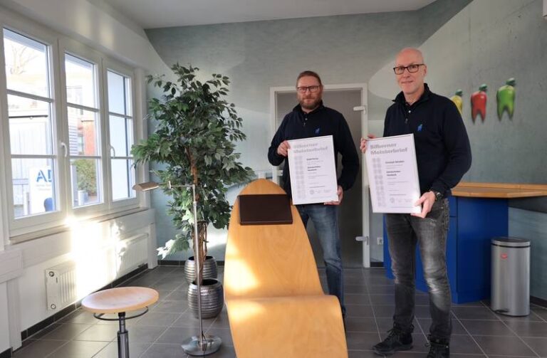 Das gibt es auch nicht alle Tage: Gleich beiden Inhabern der ADT Dentaltechnik GmbH im münsterländischen Altenberge konnte die Zahntechniker-Innung Münster jetzt die Silbernen Meisterbriefe überreichen.