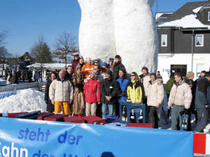 Ein Team von Zahntechnikern der BioDentalPartner haben auf dem Marktplatz in der City Winterbergs den größten Schneezahn der Welt aufgebaut. Unter der Leitung von Zahntechnikermeister Jochen Peters schufen sie in nur eineinhalb Tagen einen gigantischen Backenzahn (Zahn 26). Mit Motorsägen und Hacken wurde aus einem viereckigen Schneeturm der „Größte Zahn der Welt“ modelliert.