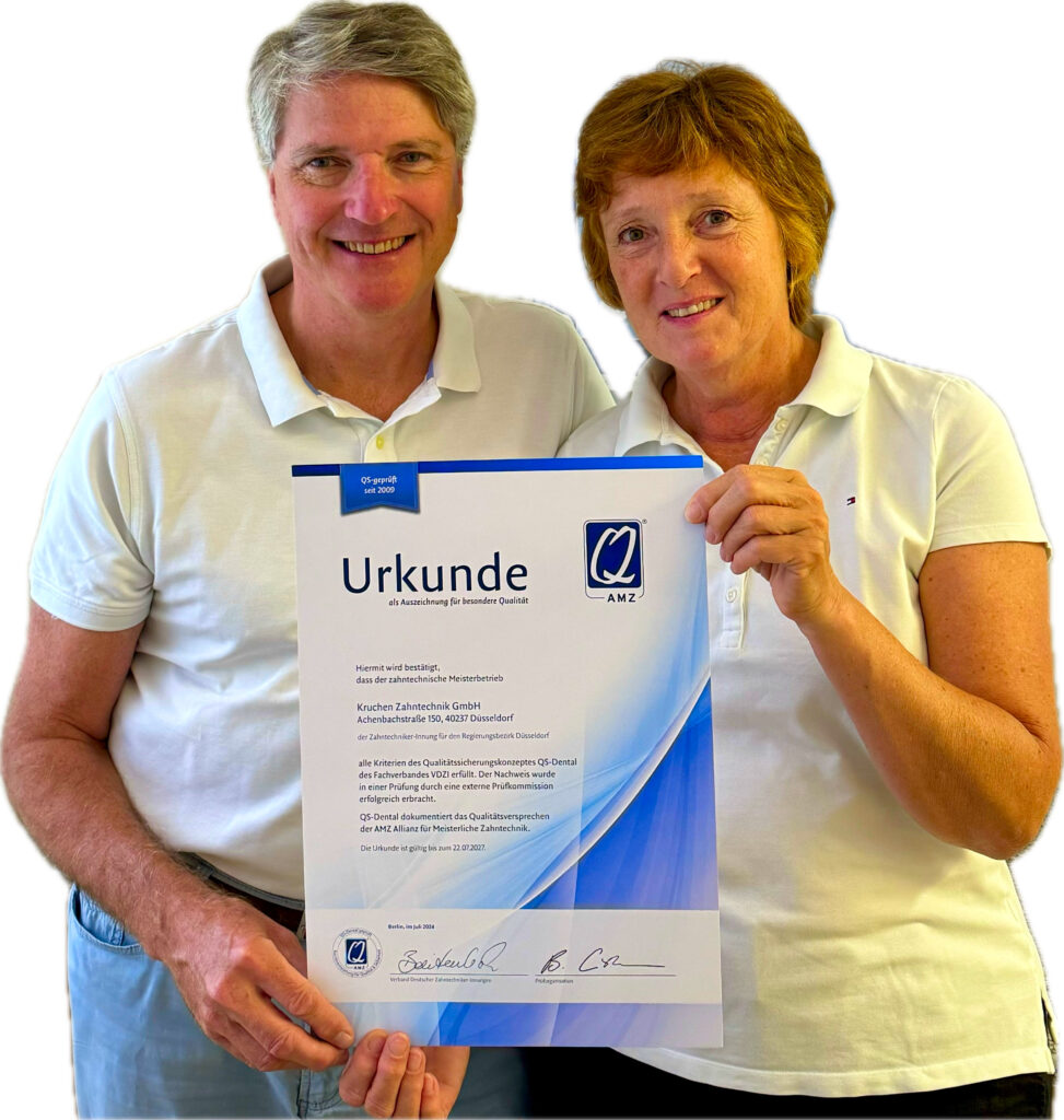 Es versteht sich von selbst, dass wir nach einem Qualitätssicherungssystem arbeiten, nicht nur nach dem Medizinproduktegesetz, sondern nach ISO 9001-2000. Danach werden alle Fertigungsschritte und verwendeten Materialien dokumentiert. Unser Qualitätsanspruch ist gelebte Praxis. Jeder Mitarbeiter, vom Kurierfahrer bis zum Zahntechnikermeister, übernimmt Qualitätsverantwortung, für sich und seine Kollegen. So stellen wir sicher, dass unabhängig von der Leistungskategorie nur hochwertiger Zahnersatz unser Labor verlässt. Damit Sie und Ihre Patienten hundertprozentig zufrieden sind.